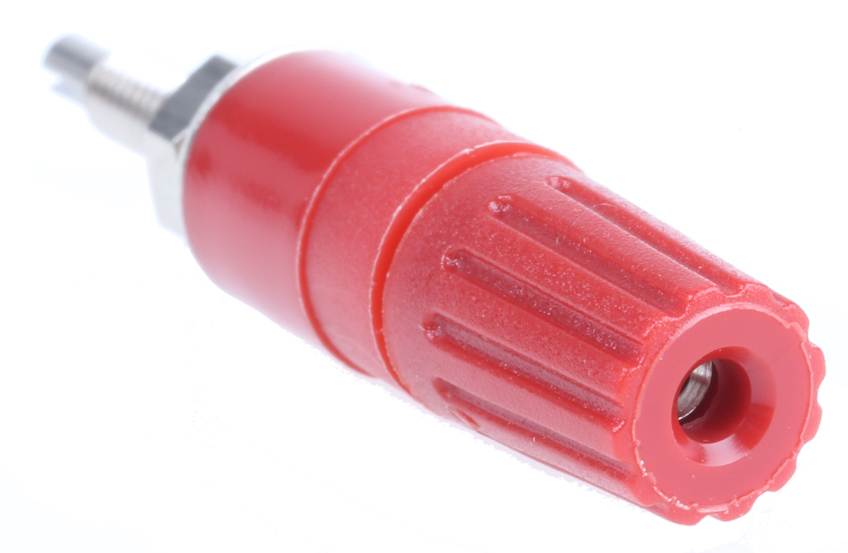 This is Multi Contact 15A Red Binding Post With Brass Contacts and Nickel Plated - 2mm Hole Diameter manufactured by Staubli. The manufacturer part number is 23.0290-22. The product has a current rating of 15a. Moreover, the product has a nominal 30 v ac, 60 v dc voltage rating. In addition, female is the available "Gender" of the product. The product is made from sturdy brass materials.