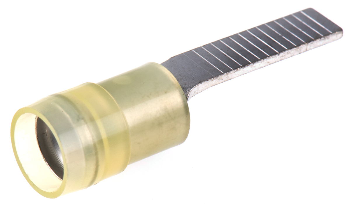 This is No Insulated Crimp Blade Terminal 18mm Blade Length 4mm² to 6mm² 12AWG to 10AWG Yellow manufactured by RS Pro. The manufacturer part number is 267-4518. In addition, male is the available "Gender" of the product. It has a robust nylon insulation material. Insulation Option: insulated. The product is made from sturdy copper materials.