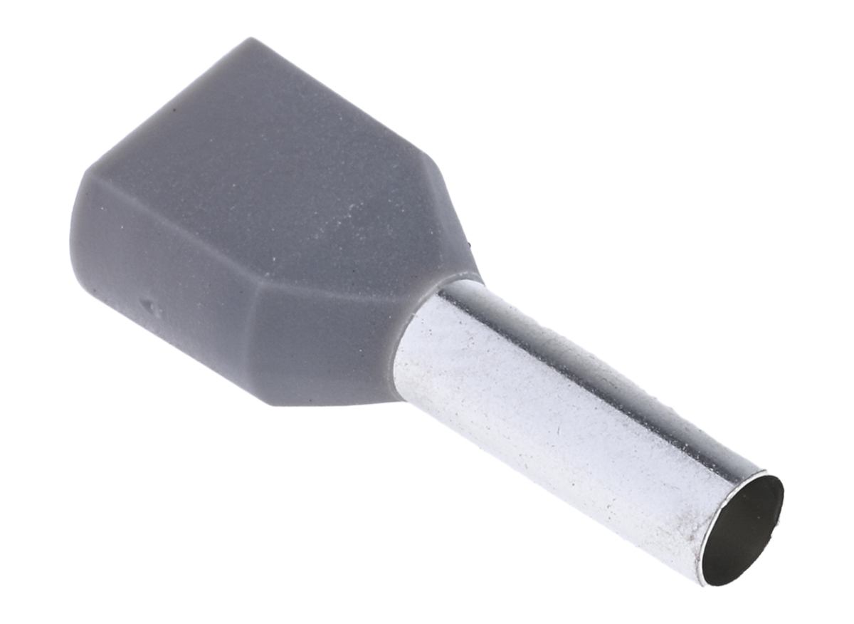 This is Insulated Crimp Bootlace Ferrule 12mm Pin Length 3.8mm Pin Diameter 2 x 4mm² Wire Size Grey manufactured by RS Pro. The manufacturer part number is 311-7993. It has a robust nylon insulation material. Insulation Option: insulated.