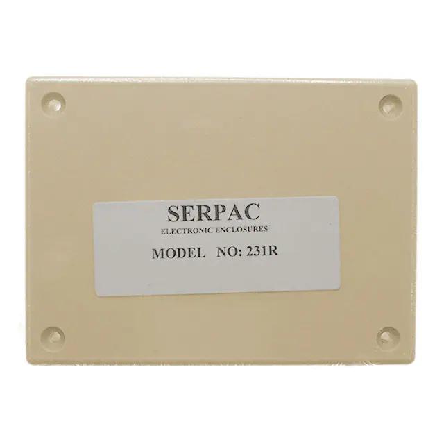 This is manufactured by Serpac. The manufacturer part number is 231R,AL. It is rated with ip40, nema 1. The product is made from highly stable and reliable plastic, abs. It is assigned with possible HTSUS value of 3923.10.9000. The product is rohs compliant. It is 0.100" (2.54mm) thick. Features a typical area dimensions of 14.2in² (92cm²). In addition, it is reach unaffected. A type of box container. It carries ul94 hb of material flammability rating. It is shipped in bulk. The product's diameters include 4.380" l x 3.250" w (111.25mm x 82.55mm). It has a long 2 weeks standard lead time. Shipping Information: shipped from digi-key. Its typical moisture sensitivity level is not applicable. The splendid features of the product include battery compartment, 9v, front access, pcb supports. The typical product's weight is 0.21 lb (95.25 g). It has a classic almond colour. The product s, is a highly preferred choice for users. In addition, the height is 1.500" (38.10mm). Design Information: hand held, split sides. Moreover, it corresponds to 231r, a base product number of the product. The product is designated with the ear99 code number