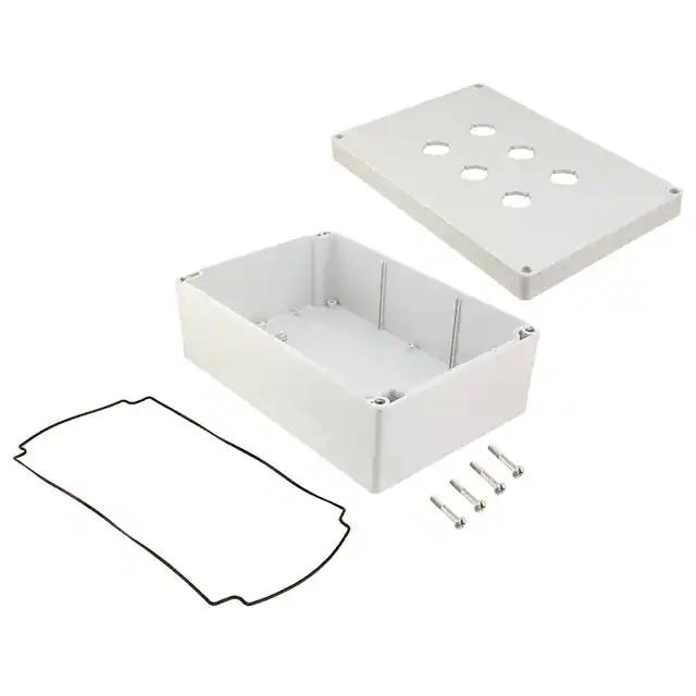This is manufactured by Hammond Manufacturing. The manufacturer part number is 1554MPB6. It is rated with ip66, nema 4,4x,12,13. The product is made from highly stable and reliable plastic, polycarbonate. It is assigned with possible HTSUS value of 3923.10.9000. The product is rohs3 compliant. Features a typical area dimensions of 59.8in² (386cm²). In addition, it is reach unaffected. A type of box container. It carries ul94 5va of material flammability rating. It is shipped in bag. The product's diameters include 9.500" l x 6.300" w (241.30mm x 160.02mm). It has a long 4 weeks standard lead time. Shipping Information: shipped from digi-key. Its typical moisture sensitivity level is not applicable. The splendid features of the product include pushbutton holes - 6, card guides, pcb supports. The typical product's weight is 1.3 lbs (589.7 g). It has a classic gray colour. The product 1554 pb, is a highly preferred choice for users. In addition, the height is 3.500" (88.90mm). Design Information: cover included. Moreover, it corresponds to 1554, a base product number of the product. The product is designated with the ear99 code number