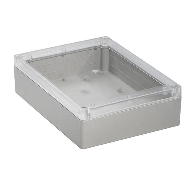 This is manufactured by Hammond Manufacturing. The manufacturer part number is RP1455C. It is rated with ip65. The product is made from highly stable and reliable plastic, abs. It is assigned with possible HTSUS value of 3923.10.9000. The product is rohs3 compliant. It is 0.128" (3.25mm) thick. Features a typical area dimensions of 56.1in² (362cm²). In addition, it is reach unaffected. A type of box container. It carries ul94 hb of material flammability rating. It is shipped in bag. The product's diameters include 8.642" l x 6.496" w (219.51mm x 165.00mm). It has a long 4 weeks standard lead time. Shipping Information: shipped from digi-key. Its typical moisture sensitivity level is not applicable. The splendid features of the product include pcb supports, watertight. The typical product's weight is 1 lb (453.59 g). It has a classic gray, clear cover/door colour. The product rp, is a highly preferred choice for users. In addition, the height is 2.358" (59.89mm). Design Information: cover included. Moreover, it corresponds to rp1455, a base product number of the product. The product is designated with the ear99 code number