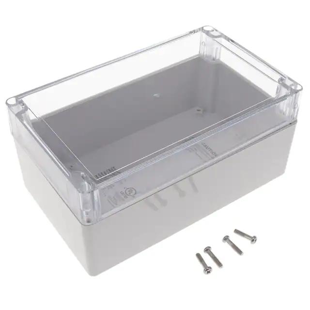 This is manufactured by Bud Industries. The manufacturer part number is PNR-2604-C. It is rated with ip65, nema 1,2,4,4x,12,13, ul-508. The product is made from highly stable and reliable plastic, polycarbonate. It is assigned with possible HTSUS value of 3923.10.9000. The product is rohs3 compliant. It is 0.120" (3.05mm) thick. Features a typical area dimensions of 37.2in² (240cm²). In addition, it is reach unaffected. A type of box container. It carries ul94 hb of material flammability rating. It is shipped in bulk. The product's diameters include 7.874" l x 4.724" w (200.00mm x 119.99mm). It has a long 11 weeks standard lead time. Shipping Information: shipped from digi-key. Its typical moisture sensitivity level is not applicable. The splendid features of the product include card guides, pcb supports. The typical product's weight is 1 lb (453.59 g). It has a classic gray, clear cover/door colour. The product pnr, is a highly preferred choice for users. In addition, the height is 3.547" (90.09mm). Design Information: cover included. The product is designated with the ear99 code number