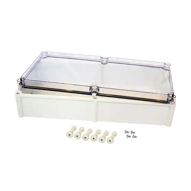 This is manufactured by Bud Industries. The manufacturer part number is PTS-25349-C. It is rated with ip67, nema 4x,6, ul-508. The product is made from highly stable and reliable plastic, fiberglass/polyester, polycarbonate. It is assigned with possible HTSUS value of 3923.10.9000. The product is rohs3 compliant. It is 0.118" (3.00mm) thick. Features a typical area dimensions of 243in² (1568cm²). In addition, it is reach unaffected. A type of box container. It carries ul94 v-0 of material flammability rating. It is shipped in bulk. The product's diameters include 22.047" l x 11.024" w (560.00mm x 280.00mm). It has a long 11 weeks standard lead time. Shipping Information: shipped from digi-key. Its typical moisture sensitivity level is not applicable. The splendid features of the product include flame retardant, pcb supports, sealing gasket. The typical product's weight is 2.8 lbs (1.3 kg). It has a classic gray, clear cover/door colour. The product pts, is a highly preferred choice for users. In addition, the height is 5.039" (128.00mm). Design Information: cover included. The product is designated with the ear99 code number