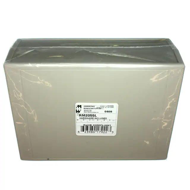 This is manufactured by Hammond Manufacturing. The manufacturer part number is RM2055L. It is rated with ip43. The product is made from highly stable and reliable plastic, abs. It is assigned with possible HTSUS value of 3923.10.9000. The product is rohs3 compliant. Features a typical area dimensions of 41.2in² (266cm²). In addition, it is reach unaffected. A type of box container. It carries ul94 hb of material flammability rating. It is shipped in bulk. The product's diameters include 7.480" l x 5.512" w (189.99mm x 140.00mm). It has a long 4 weeks standard lead time. Shipping Information: shipped from digi-key. Its typical moisture sensitivity level is not applicable. The splendid features of the product include pcb supports. It has a classic gray colour. The product rm, is a highly preferred choice for users. In addition, the height is 2.785" (70.74mm). Design Information: split sides and end panel(s). Moreover, it corresponds to rm2055, a base product number of the product. The product is designated with the ear99 code number