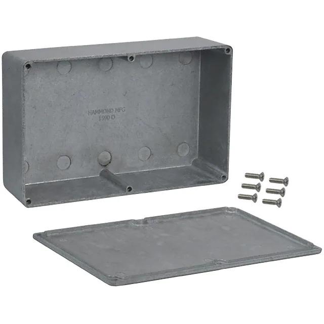 This is manufactured by Hammond Manufacturing. The manufacturer part number is 1590D. It is rated with ip54. The product is made from highly stable and reliable metal, aluminum. It is assigned with possible HTSUS value of 7612.90.1090. The product is rohs3 compliant. It is 0.080" (2.03mm) thick. Features a typical area dimensions of 35.0in² (226cm²). In addition, it is reach unaffected. A type of box container. It is shipped in bulk. The product's diameters include 7.402" l x 4.724" w (188.01mm x 119.99mm). It has a long 4 weeks standard lead time. Shipping Information: shipped from digi-key. Its typical moisture sensitivity level is not applicable. The splendid features of the product include emi shielded. The typical product's weight is 0.6 lb (272.16 g). It has a classic unpainted colour. The product 1590, is a highly preferred choice for users. In addition, the height is 2.273" (57.73mm). Design Information: cover included. Moreover, it corresponds to 1590, a base product number of the product. The product is designated with the ear99 code number