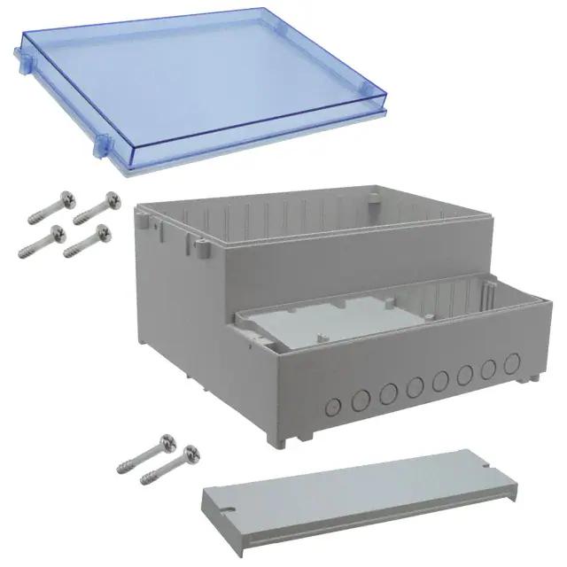 This is manufactured by Bud Industries. The manufacturer part number is DCS-11904. It is rated with ip65. The product is made from highly stable and reliable plastic, abs/polycarbonate. It is assigned with possible HTSUS value of 3923.10.9000. The product is rohs3 compliant. Features a typical area dimensions of 72.5in² (468cm²). In addition, it is reach unaffected. A type of box container. It carries ul94 hb of material flammability rating. It is shipped in bulk. The product's diameters include 11.654" l x 6.221" w (296.00mm x 158.00mm). It has a long 11 weeks standard lead time. Shipping Information: shipped from digi-key. Its typical moisture sensitivity level is not applicable. The splendid features of the product include card guides, knockouts, pcb supports. The typical product's weight is 0.7 lb (317.51 g). It has a classic gray, blue cover/door colour. The product dcs, is a highly preferred choice for users. In addition, the height is 11.063" (281.00mm). Design Information: cover included. The product is designated with the ear99 code number