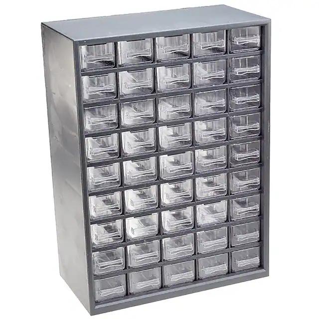 This is manufactured by Flambeau Inc.. The manufacturer part number is U45P. The product is made from highly stable and reliable plastic, non specified. It is assigned with possible HTSUS value of 3923.10.9000. The product is rohs3 compliant. Features a typical area dimensions of 198in² (1277cm²). In addition, it is reach unaffected. A type of component storage container. It is shipped in bulk. The product's diameters include 16.500" l x 12.000" w (419.10mm x 304.80mm). It has a long 3 weeks standard lead time. Shipping Information: shipped from digi-key. Its typical moisture sensitivity level is not applicable. The splendid features of the product include compartments/drawers - 45. It has a classic black colour. The product parts station™, is a highly preferred choice for users. In addition, the height is 6.250" (158.75mm). Design Information: individual drawers. The product is designated with the ear99 code number