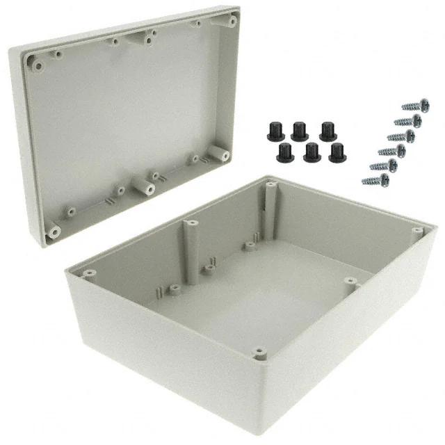 This is manufactured by Bud Industries. The manufacturer part number is PT-11557-G. The product is made from highly stable and reliable plastic, abs. It is assigned with possible HTSUS value of 3923.10.9000. The product is rohs3 compliant. It is 0.100" (2.54mm) thick. Features a typical area dimensions of 33.5in² (216cm²). In addition, it is reach unaffected. A type of box container. It carries ul94 hb of material flammability rating. It is shipped in bulk. The product's diameters include 6.875" l x 4.875" w (174.63mm x 123.83mm). It has a long 4 weeks standard lead time. Shipping Information: shipped from digi-key. Its typical moisture sensitivity level is not applicable. The splendid features of the product include pcb supports. The typical product's weight is 0.531 lb (240.86 g). It has a classic gray colour. The product plastibox style f, is a highly preferred choice for users. In addition, the height is 2.520" (64.00mm). Design Information: split sides. The product is designated with the ear99 code number