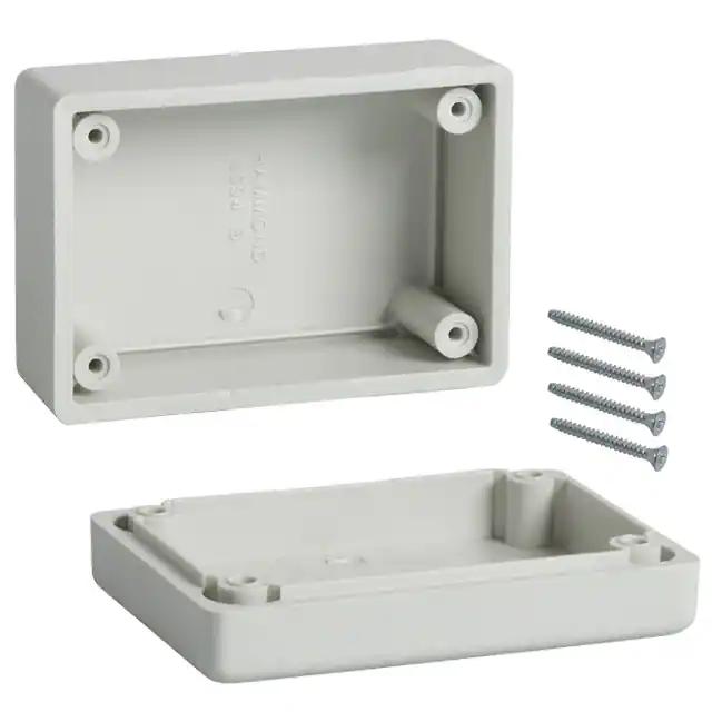 This is manufactured by Hammond Manufacturing. The manufacturer part number is 1594BSGY. It is rated with ip54. The product is made from highly stable and reliable plastic, abs. It is assigned with possible HTSUS value of 3923.10.9000. The product is rohs3 compliant. It is 0.130" (3.30mm) thick. Features a typical area dimensions of 7.03in² (45.4cm²). In addition, it is reach unaffected. A type of box container. It is shipped in bulk. The product's diameters include 3.189" l x 2.205" w (81.00mm x 56.00mm). It has a long 4 weeks standard lead time. Shipping Information: shipped from digi-key. Its typical moisture sensitivity level is not applicable. The typical product's weight is 0.144 lb (65.32 g). It has a classic gray colour. The product 1594s, is a highly preferred choice for users. In addition, the height is 1.578" (40.08mm). Design Information: cover included. Moreover, it corresponds to 1594, a base product number of the product. The product is designated with the ear99 code number