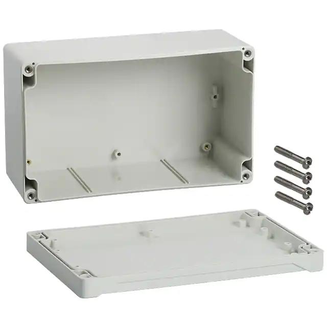 This is manufactured by Hammond Manufacturing. The manufacturer part number is 1555UGY. It is rated with ip66, nema 4,4x,12,13. The product is made from highly stable and reliable plastic, abs. It is assigned with possible HTSUS value of 3923.10.9000. The product is rohs3 compliant. It is 0.118" (3.00mm) thick. Features a typical area dimensions of 37.2in² (240cm²). In addition, it is reach unaffected. A type of box container. It carries ul94 hb of material flammability rating. It is shipped in bulk. The product's diameters include 7.874" l x 4.724" w (200.00mm x 119.99mm). It has a long 4 weeks standard lead time. Shipping Information: shipped from digi-key. Its typical moisture sensitivity level is not applicable. The splendid features of the product include card guides, pcb supports, watertight. It has a classic gray colour. The product 1555, is a highly preferred choice for users. In addition, the height is 3.543" (90.00mm). Design Information: cover included. Moreover, it corresponds to 1555, a base product number of the product. The product is designated with the ear99 code number