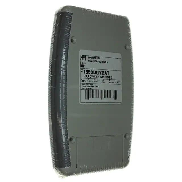 This is manufactured by Hammond Manufacturing. The manufacturer part number is 1553DGYBAT. The product is made from highly stable and reliable plastic, abs. It is assigned with possible HTSUS value of 3923.10.9000. The product is rohs3 compliant. It is 0.108" (2.74mm) thick. Features a typical area dimensions of 20.3in² (131cm²). In addition, it is reach unaffected. A type of box container. It carries ul94 hb of material flammability rating. It is shipped in bulk. The product's diameters include 5.797" l x 3.504" w (147.24mm x 89.00mm). It has a long 4 weeks standard lead time. Shipping Information: shipped from digi-key. Its typical moisture sensitivity level is not applicable. The splendid features of the product include battery compartment, 9v and aa, pcb supports. It has a classic gray colour. The product 1553, is a highly preferred choice for users. In addition, the height is 0.984" (25.00mm). Design Information: hand held, split sides. Moreover, it corresponds to 1553, a base product number of the product. The product is designated with the ear99 code number