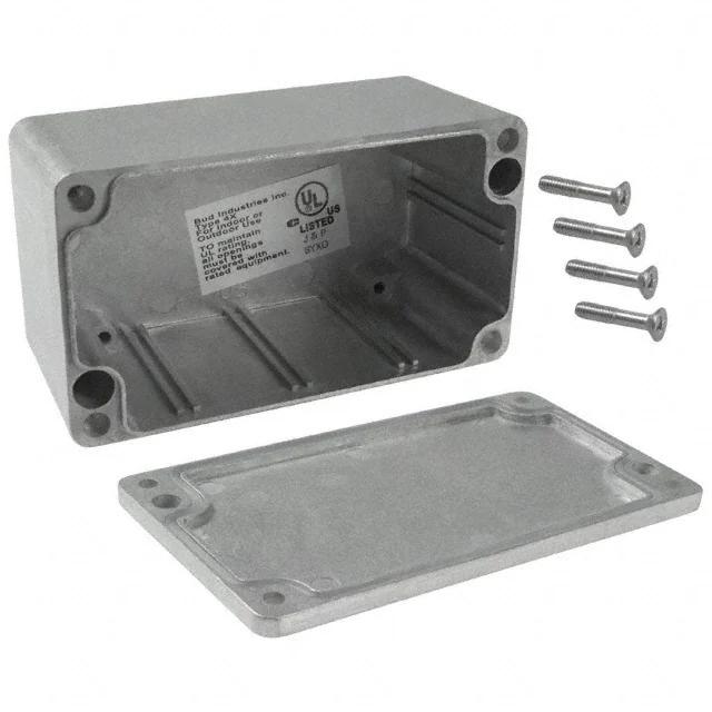 This is manufactured by Bud Industries. The manufacturer part number is AN-1303. It is rated with ip65, nema 1,2,4,4x,12,13, ul-508. The product is made from highly stable and reliable metal, aluminum. It is assigned with possible HTSUS value of 7612.90.1090. The product is rohs3 compliant. It is 0.130" (3.30mm) thick. Features a typical area dimensions of 11.7in² (75cm²). In addition, it is reach unaffected. A type of box container. It is shipped in bulk. The product's diameters include 4.545" l x 2.578" w (115.44mm x 65.48mm). Shipping Information: shipped from digi-key. Its typical moisture sensitivity level is not applicable. The splendid features of the product include card guides, pcb supports, watertight. The typical product's weight is 0.75 lb (340.19 g). It has a classic natural colour. The product an, is a highly preferred choice for users. In addition, the height is 2.165" (55.00mm). Design Information: cover included. The product is designated with the ear99 code number
