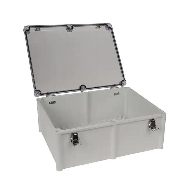 This is manufactured by Bud Industries. The manufacturer part number is PTH-22460-C. It is rated with ip67, nema 4x, ul 508. The product is made from highly stable and reliable polycarbonate (pc). It is assigned with possible HTSUS value of 3923.10.9000. The product is rohs3 compliant. It is 0.120" (3.05mm) thick. Features a typical area dimensions of 220in² (1419cm²). In addition, it is reach unaffected. A type of box container. It carries ul94 5va of material flammability rating. It is shipped in bulk. The product's diameters include 16.930" l x 13.000" w (430.02mm x 330.20mm). It has a long 11 weeks standard lead time. Its typical moisture sensitivity level is not applicable. The splendid features of the product include latches, sealing gasket. The typical product's weight is 2.7 lbs (1.2 kg). It has a classic gray colour. The product pth, is a highly preferred choice for users. In addition, the height is 7.090" (180.09mm). Design Information: hinged door, lid. The product is designated with the ear99 code number
