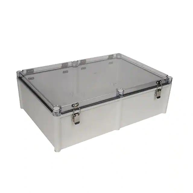 This is manufactured by Bud Industries. The manufacturer part number is PTH-22462-C. It is rated with ip67, nema 4x, ul 508. The product is made from highly stable and reliable polycarbonate (pc). It is assigned with possible HTSUS value of 3923.10.9000. The product is rohs3 compliant. It is 0.120" (3.05mm) thick. Features a typical area dimensions of 330in² (2129cm²). In addition, it is reach unaffected. A type of box container. It carries ul94 5va of material flammability rating. It is shipped in bulk. The product's diameters include 22.050" l x 14.960" w (560.07mm x 380.00mm). It has a long 11 weeks standard lead time. Its typical moisture sensitivity level is not applicable. The splendid features of the product include latches, sealing gasket. The typical product's weight is 3.7 lbs (1.7 kg). It has a classic gray colour. The product pth, is a highly preferred choice for users. In addition, the height is 7.010" (178.05mm). Design Information: hinged door, lid. The product is designated with the ear99 code number
