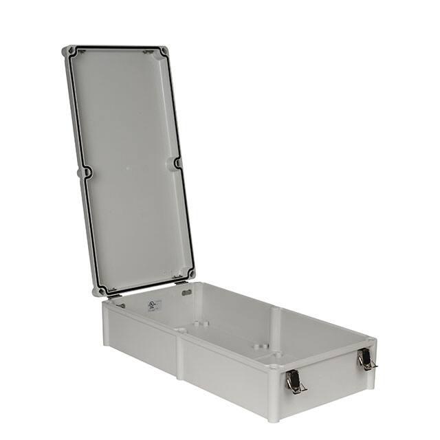 This is manufactured by Bud Industries. The manufacturer part number is PTH-22758-L. It is rated with ip67, nema 4x, ul 508. The product is made from highly stable and reliable polycarbonate (pc). It is assigned with possible HTSUS value of 3923.10.9000. The product is rohs3 compliant. It is 0.120" (3.05mm) thick. Features a typical area dimensions of 243in² (1568cm²). In addition, it is reach unaffected. A type of box container. It carries ul94 5va of material flammability rating. It is shipped in bulk. The product's diameters include 22.050" l x 11.020" w (560.07mm x 279.91mm). It has a long 11 weeks standard lead time. Its typical moisture sensitivity level is not applicable. The splendid features of the product include latches, sealing gasket. The typical product's weight is 2.6 lbs (1.2 kg). It has a classic gray colour. The product pth, is a highly preferred choice for users. In addition, the height is 5.120" (130.05mm). Design Information: hinged door, lid. The product is designated with the ear99 code number