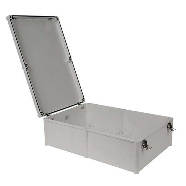 This is manufactured by Bud Industries. The manufacturer part number is PTH-22762-L. It is rated with ip67, nema 4x, ul 508. The product is made from highly stable and reliable polycarbonate (pc). It is assigned with possible HTSUS value of 3923.10.9000. The product is rohs3 compliant. It is 0.120" (3.05mm) thick. Features a typical area dimensions of 330in² (2129cm²). In addition, it is reach unaffected. A type of box container. It carries ul94 5va of material flammability rating. It is shipped in bulk. The product's diameters include 22.050" l x 14.960" w (560.07mm x 380.00mm). It has a long 11 weeks standard lead time. Its typical moisture sensitivity level is not applicable. The splendid features of the product include latches, sealing gasket. The typical product's weight is 3.6 lbs (1.6 kg). It has a classic gray colour. The product pth, is a highly preferred choice for users. In addition, the height is 7.090" (180.09mm). Design Information: hinged door, lid. The product is designated with the ear99 code number