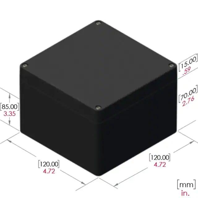 This is manufactured by Serpac. The manufacturer part number is RB55P06B28B. It is rated with ip67, nema 4. The product is made from highly stable and reliable plastic, polycarbonate. It is assigned with possible HTSUS value of 3923.10.9000. It is 0.120" (3.05mm) thick. Features a typical area dimensions of 22.3in² (144cm²). In addition, it is reach unaffected. A type of box container. It carries ul94 v-0 of material flammability rating. It is shipped in bulk. Its typical moisture sensitivity level is not applicable. It has a long 2 weeks standard lead time. It has a classic black colour. The product rb, is a highly preferred choice for users. In addition, the height is 3.350" (85.09mm). Design Information: cover included. Moreover, it corresponds to rb55p06b, a base product number of the product. The product is designated with the ear99 code number