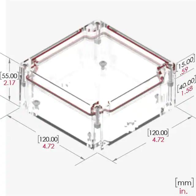 This is manufactured by Serpac. The manufacturer part number is RB55P06C16C. It is rated with ip67, nema 4. The product is made from highly stable and reliable plastic, polycarbonate. It is assigned with possible HTSUS value of 3923.10.9000. It is 0.120" (3.05mm) thick. Features a typical area dimensions of 22.3in² (144cm²). In addition, it is reach unaffected. A type of box container. It carries ul94 v-0 of material flammability rating. It is shipped in bulk. Its typical moisture sensitivity level is not applicable. It has a long 2 weeks standard lead time. It has a classic clear colour. The product rb, is a highly preferred choice for users. In addition, the height is 2.170" (55.12mm). Design Information: cover included. Moreover, it corresponds to rb55p06c, a base product number of the product. The product is designated with the ear99 code number