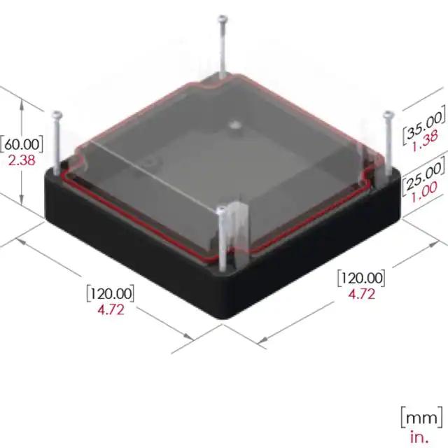 This is manufactured by Serpac. The manufacturer part number is RB55P14C10B. It is rated with ip67, nema 4. The product is made from highly stable and reliable plastic, polycarbonate. It is assigned with possible HTSUS value of 3923.10.9000. It is 0.120" (3.05mm) thick. Features a typical area dimensions of 22.3in² (144cm²). In addition, it is reach unaffected. A type of box container. It carries ul94 v-0 of material flammability rating. It is shipped in bulk. Its typical moisture sensitivity level is not applicable. It has a long 2 weeks standard lead time. It has a classic black, clear cover/door colour. The product rb, is a highly preferred choice for users. In addition, the height is 2.380" (60.45mm). Design Information: cover included. Moreover, it corresponds to rb55p14c, a base product number of the product. The product is designated with the ear99 code number