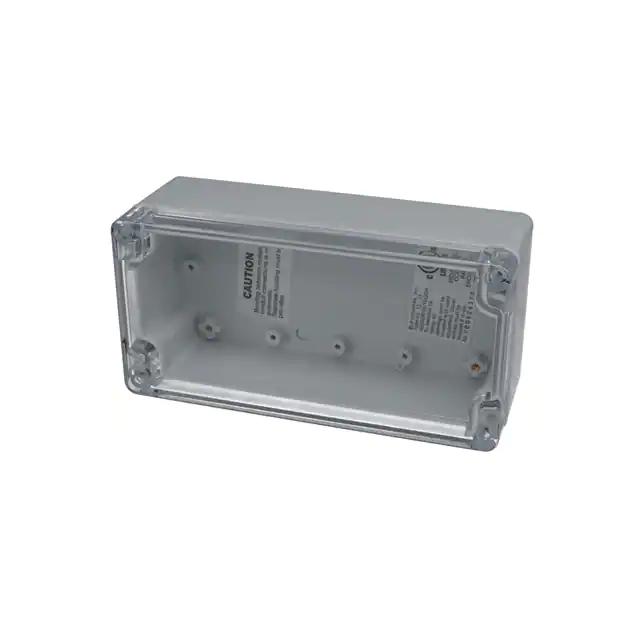 This is manufactured by Bud Industries. The manufacturer part number is PN-1332-AC. It is rated with ip68, nema 1, 2, 4, 4x, 6, 6p, 12, 13, ul-508. The product is made from highly stable and reliable plastic, polycarbonate. It is assigned with possible HTSUS value of 3923.10.9000. The product is rohs3 compliant. It is 0.110" (2.79mm) thick. Features a typical area dimensions of 19.8in² (128cm²). In addition, it is reach unaffected. A type of box container. It carries ul94 hb of material flammability rating. It is shipped in box. The product's diameters include 6.300" l x 3.150" w (160.02mm x 80.01mm). It has a long 12 weeks standard lead time. Its typical moisture sensitivity level is 1 (unlimited). It has a classic gray, clear cover/door colour. The product pn, is a highly preferred choice for users. In addition, the height is 2.170" (55.12mm). Design Information: cover included. The product is designated with the ear99 code number