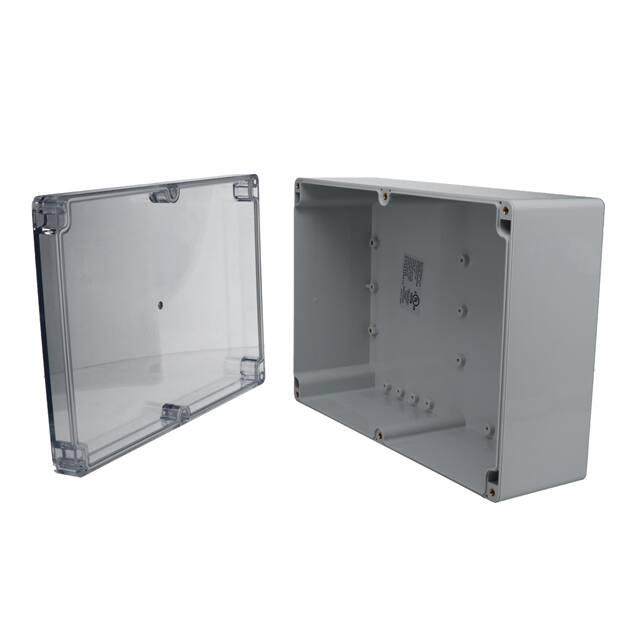 This is manufactured by Bud Industries. The manufacturer part number is PN-1335-AC. It is rated with ip68, nema 1, 2, 4, 4x, 6, 6p, 12, 13, ul-508. The product is made from highly stable and reliable plastic, polycarbonate. It is assigned with possible HTSUS value of 3923.10.9000. The product is rohs3 compliant. It is 0.120" (3.05mm) thick. Features a typical area dimensions of 75.9in² (490cm²). In addition, it is reach unaffected. A type of box container. It carries ul94 hb of material flammability rating. It is shipped in box. The product's diameters include 10.430" l x 7.280" w (264.92mm x 184.91mm). It has a long 12 weeks standard lead time. Its typical moisture sensitivity level is 1 (unlimited). It has a classic gray, clear cover/door colour. The product pn, is a highly preferred choice for users. In addition, the height is 3.739" (94.97mm). Design Information: cover included. The product is designated with the ear99 code number