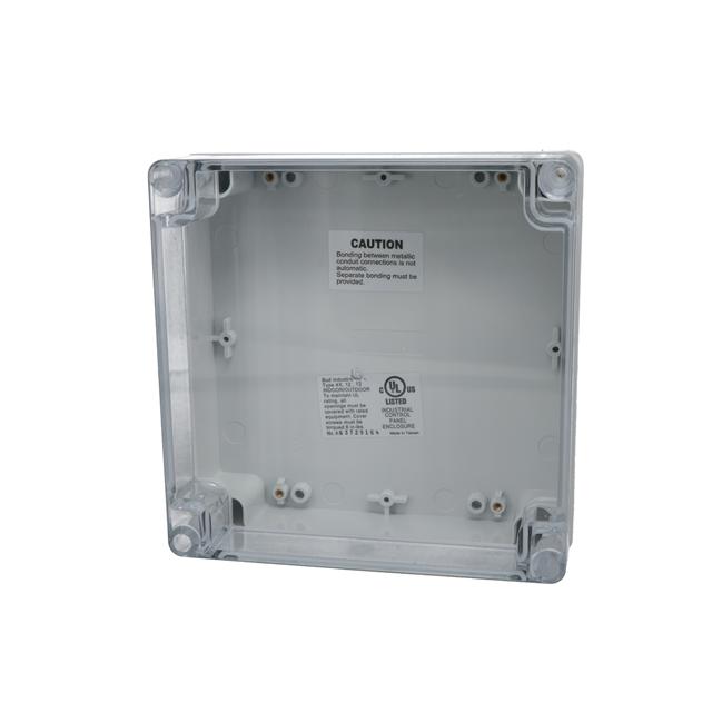 This is manufactured by Bud Industries. The manufacturer part number is PN-1338-AC. It is rated with ip68, nema 1, 2, 4, 4x, 6, 6p, 12, 13, ul-508. The product is made from highly stable and reliable plastic, polycarbonate. It is assigned with possible HTSUS value of 3923.10.9000. The product is rohs3 compliant. It is 0.120" (3.05mm) thick. Features a typical area dimensions of 39.7in² (256cm²). In addition, it is reach unaffected. A type of box container. It carries ul94 hb of material flammability rating. It is shipped in box. The product's diameters include 6.300" l x 6.300" w (160.02mm x 160.02mm). It has a long 12 weeks standard lead time. Its typical moisture sensitivity level is 1 (unlimited). It has a classic gray, clear cover/door colour. The product pn, is a highly preferred choice for users. In addition, the height is 2.360" (59.94mm). Design Information: cover included. The product is designated with the ear99 code number