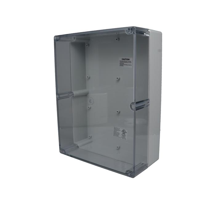 This is manufactured by Bud Industries. The manufacturer part number is PN-1343-AC. It is rated with ip68, nema 1, 2, 4, 4x, 6, 6p, 12, 13, ul-508. The product is made from highly stable and reliable plastic, polycarbonate. It is assigned with possible HTSUS value of 3923.10.9000. The product is rohs3 compliant. It is 0.140" (3.56mm) thick. Features a typical area dimensions of 107in² (690cm²). In addition, it is reach unaffected. A type of box container. It carries ul94 hb of material flammability rating. It is shipped in box. The product's diameters include 11.810" l x 9.060" w (299.97mm x 230.12mm). It has a long 12 weeks standard lead time. Its typical moisture sensitivity level is 1 (unlimited). It has a classic gray, clear cover/door colour. The product pn, is a highly preferred choice for users. In addition, the height is 4.390" (111.51mm). Design Information: cover included. The product is designated with the ear99 code number