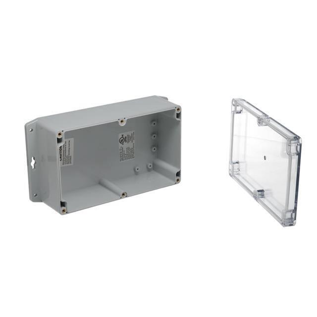 This is manufactured by Bud Industries. The manufacturer part number is PN-1334-ACMB. It is rated with ip68, nema 1, 2, 4, 4x, 6, 6p, 12, 13, ul-508. The product is made from highly stable and reliable plastic, polycarbonate. The product is rohs3 compliant. It is 0.120" (3.05mm) thick. Features a typical area dimensions of 37.1in² (240cm²). In addition, it is reach unaffected. A type of box container. It carries ul94 hb of material flammability rating. It is shipped in box. The product's diameters include 7.870" l x 4.720" w (199.90mm x 119.89mm). It has a long 14 weeks standard lead time. Its typical moisture sensitivity level is 1 (unlimited). It has a classic light gray colour. The product pn, is a highly preferred choice for users. In addition, the height is 2.950" (74.93mm). Design Information: cover included.