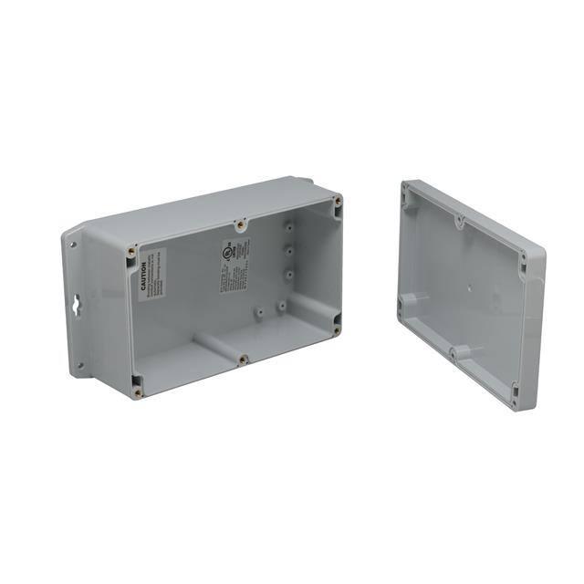 This is manufactured by Bud Industries. The manufacturer part number is PN-1334-AMB. It is rated with ip68, nema 1, 2, 4, 4x, 6, 6p, 12, 13, ul-508. The product is made from highly stable and reliable plastic, polycarbonate. The product is rohs3 compliant. It is 0.120" (3.05mm) thick. Features a typical area dimensions of 37.1in² (240cm²). In addition, it is reach unaffected. A type of box container. It carries ul94 hb of material flammability rating. It is shipped in box. The product's diameters include 7.870" l x 4.720" w (199.90mm x 119.89mm). It has a long 14 weeks standard lead time. Its typical moisture sensitivity level is 1 (unlimited). It has a classic light gray colour. The product pn, is a highly preferred choice for users. In addition, the height is 2.950" (74.93mm). Design Information: cover included.