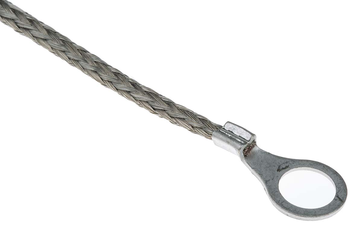 This is Braided Earth Lead M8 Stud Size 16 x 8 x 0.15 mm 200mm BS EN 13602:2002 BS4109 manufactured by RS Pro. The manufacturer part number is 489-185. The conductor is made from tinned copper material. Its accurate length is 0.2m. The product is available in 16 x 8 x 0.15 mm size.