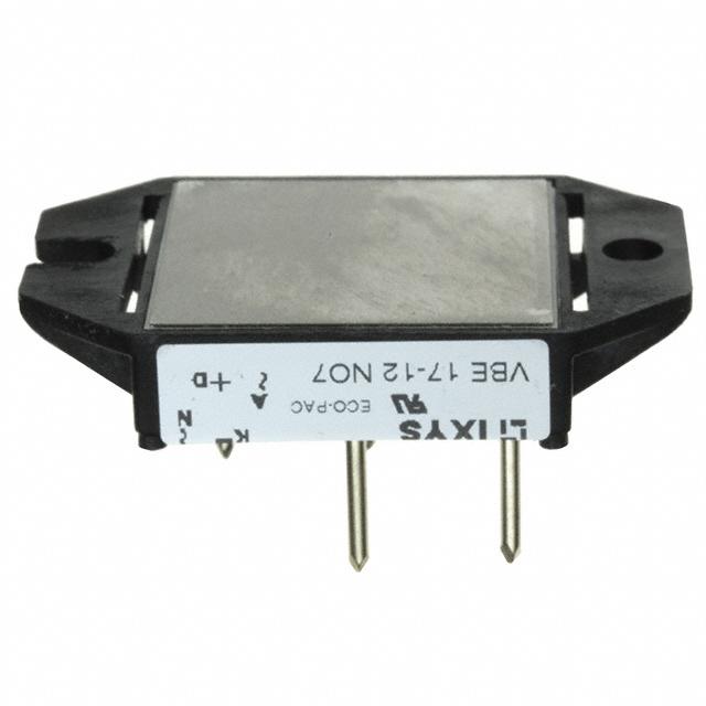 This is manufactured by IXYS. The manufacturer part number is VBE17-12NO7. It is assigned with possible HTSUS value of 8541.10.0080. The product is rohs3 compliant. The maximum peak reverse voltage is 1.2 kv. The product has -40°c ~ 150°c (tj) operating temperature range. Moreover, the product comes in [Package/ Case]. In addition, it is reach unaffected. It features a 19 a of average rectified current. The product has a maximum forward voltage of 2.92 v @ 10 a. It is shipped in bulk. Its typical moisture sensitivity level is 1 (unlimited). It has a long 73 weeks standard lead time. 60 µa @ 1200 v is the reverse leakage value of a bespoke product. The product is available in chassis mount configuration. eco-pac1 is the supplier device package value. It is designed with a single phase diode. This product use standard technology. Moreover, it corresponds to vbe17, a base product number of the product. The product is designated with the ear99 code number