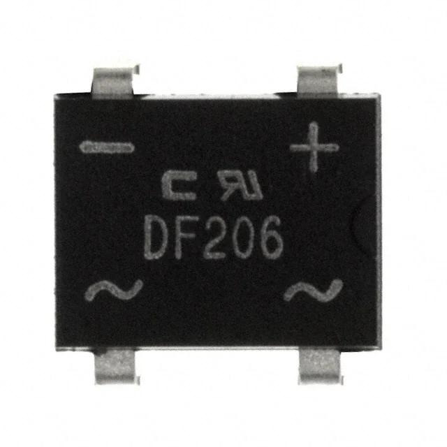 This is manufactured by Comchip Technology. The manufacturer part number is DF206-G. It is assigned with possible HTSUS value of 8541.10.0080. The product is rohs3 compliant. The maximum peak reverse voltage is 600 v. The product has -55°c ~ 150°c (tj) operating temperature range. Moreover, the product comes in [Package/ Case]. In addition, it is reach unaffected. It features a 2 a of average rectified current. The product has a maximum forward voltage of 1.1 v @ 2 a. It is shipped in tube. Its typical moisture sensitivity level is 1 (unlimited). It has a long 10 weeks standard lead time. 10 µa @ 600 v is the reverse leakage value of a bespoke product. The product is available in through hole configuration. 4-df is the supplier device package value. It is designed with a single phase diode. This product use standard technology. Moreover, it corresponds to df206, a base product number of the product. The product is designated with the ear99 code number