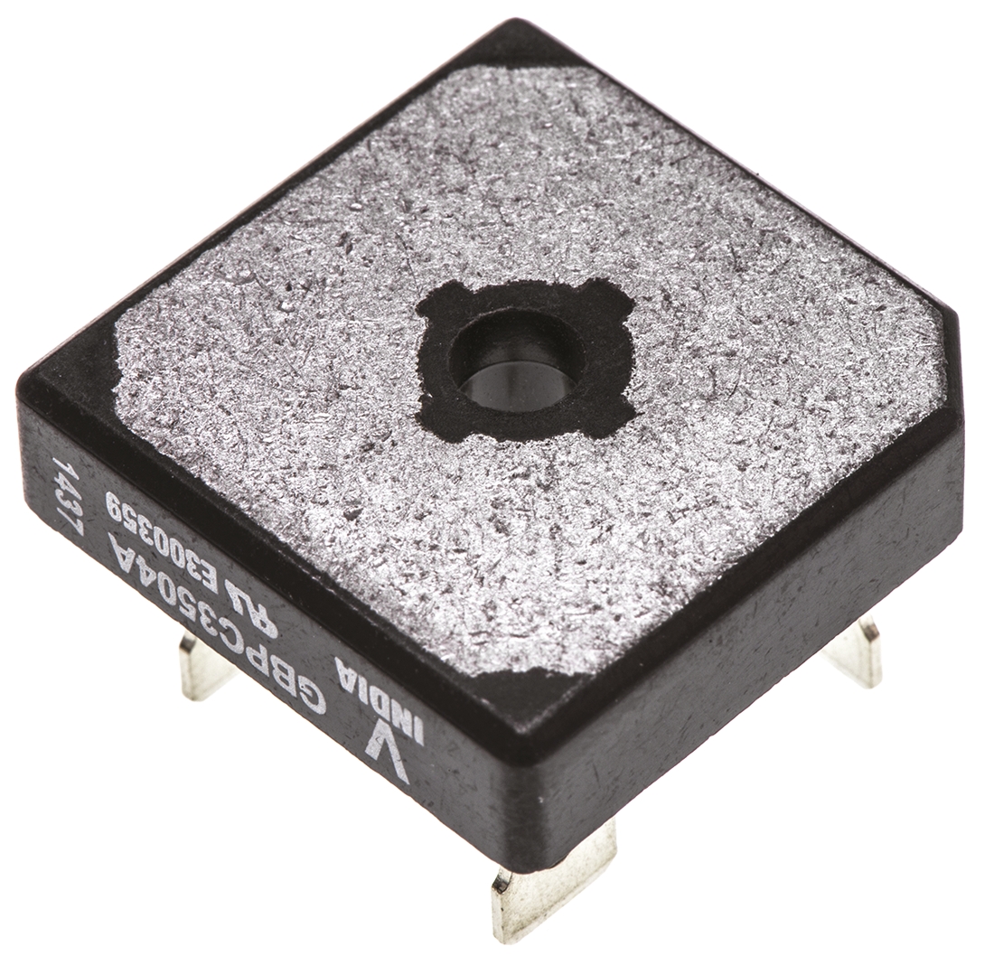 This is Bridge Rectifier 35A 400V 4-Pin GBPC-A manufactured by Vishay. The manufacturer part number is VS-GBPC3504A. The given dimensions of the product include 28.6 x 28.6 x 7.7mm. In addition, the height is 7.7mm. Furthermore, the product is 28.6mm wide. Its accurate length is 28.6mm. Whereas, the minimum operating temperature of the product is -55 °c. The product is available in screw mount configuration. The product is available in single configuration. It has a maximum operating temperature of +150 °c.