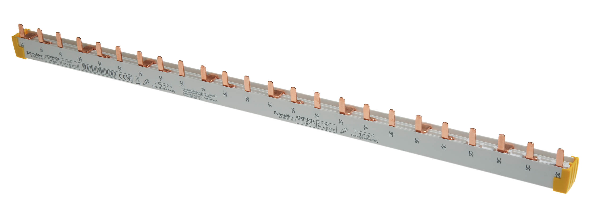 This is 3 Phase Busbar 24 Module 415V 18mm Pitch manufactured by Schneider Electric. The manufacturer part number is A9XPH324. The product has a current rating of 100a. The product ic60, is a highly preferred choice for users. Moreover, the product is 18mm