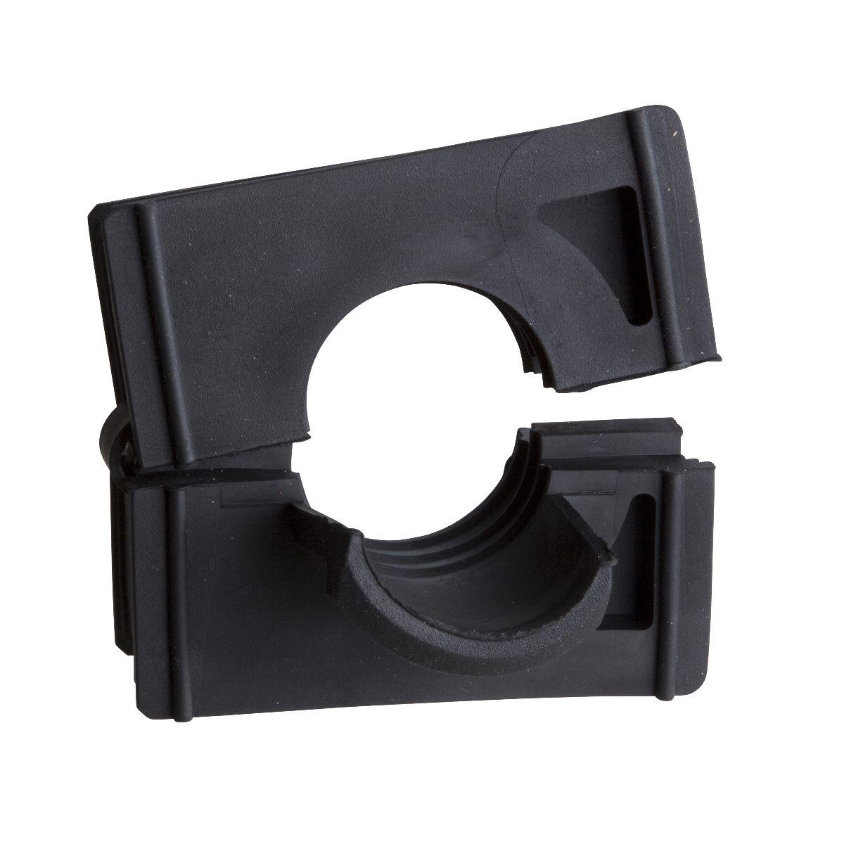 This is Cable Clip Black Cable Mount Thermoplastic Rubber C-clamp 14mm Max. Bundle manufactured by Schneider Electric. The manufacturer part number is NSYCEJD13. The product is made from highly stable and reliable thermoplastic rubber.
