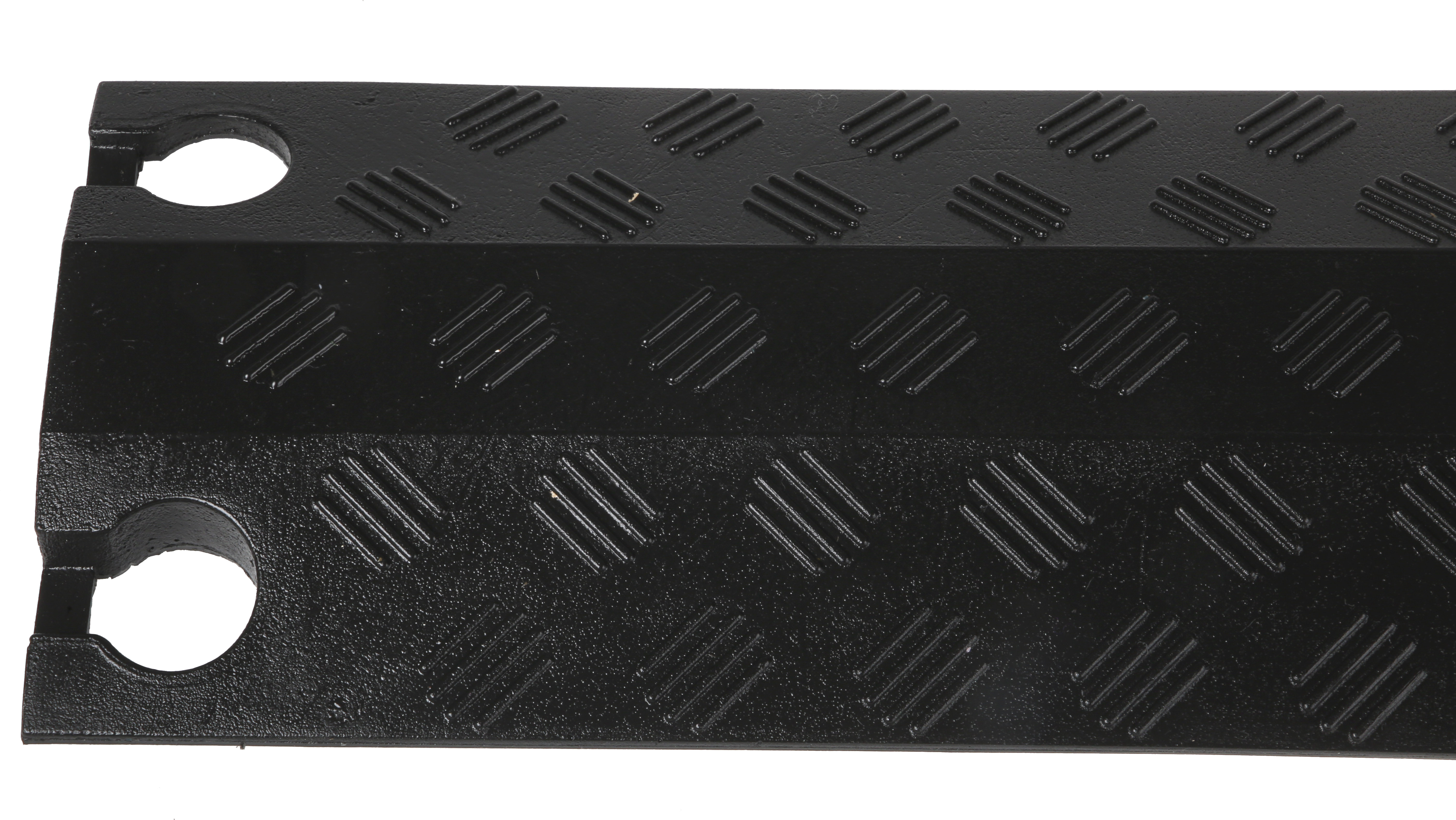 This is Drop Over Black Rigid Cable Protector - manufactured by RS PRO. The manufacturer part number is 182-3875. The product is made from highly stable and reliable polyurethane. Furthermore, the product is 133 mm wide. Its accurate length is 765mm. It is supplied with 1 channels.