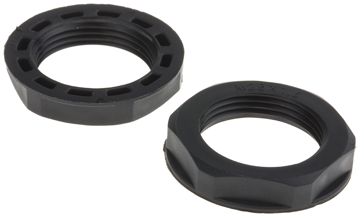 This is Black Nylon 66 Cable Gland Locknut M25 Thread IP68 manufactured by RS Pro. The manufacturer part number is 822-9849. It has a typical thread size of m25. The product is made from highly stable and reliable nylon 66.