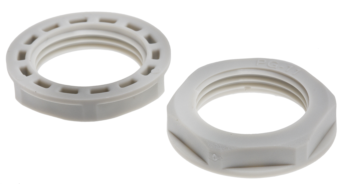 This is Grey Nylon 66 Cable Gland Locknut PG11 Thread IP68 manufactured by RS Pro. The manufacturer part number is 822-9694. It has a typical thread size of pg11. The product is made from highly stable and reliable nylon 66.