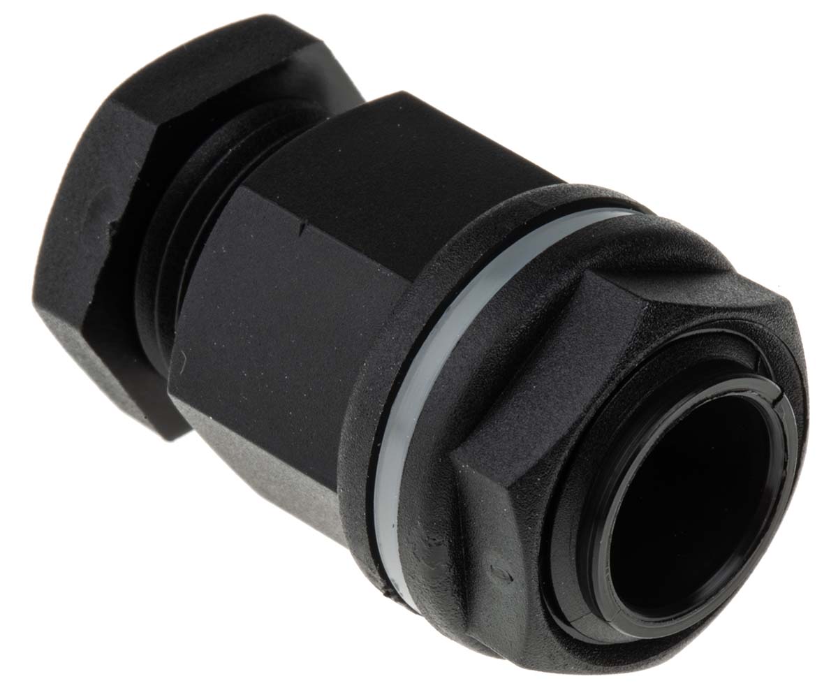 This is M16 Black Plastic IP55 Cable Gland With Locknut manufactured by RS Pro. The manufacturer part number is 127-209. The product is made from highly stable and reliable plastic. It has a typical thread size of m16. Whereas, the minimum operating temperature of the product is -20°c. It has a maximum operating temperature of +80°c.