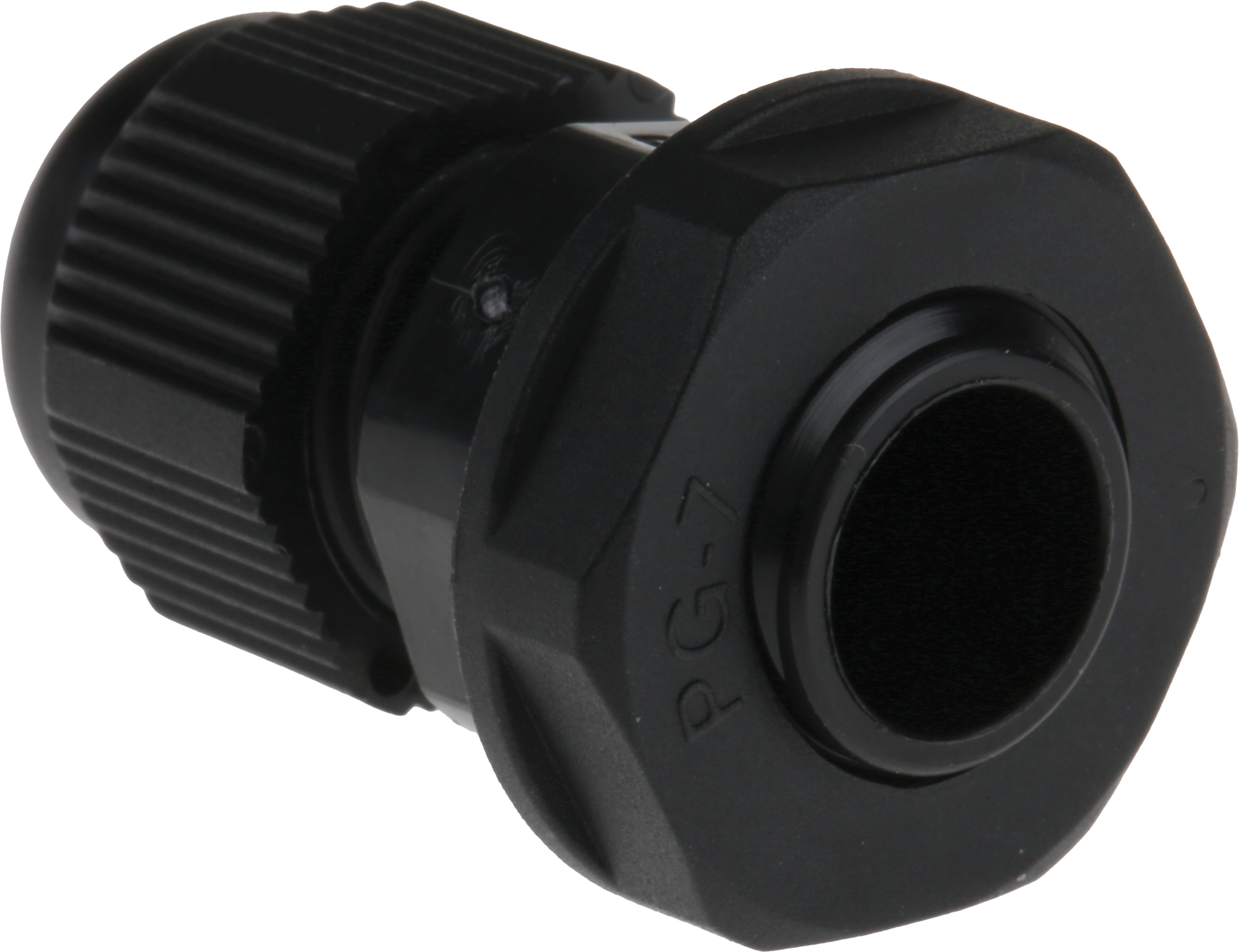 This is PG7 Black Nylon IP68 Cable Gland With Locknut manufactured by RS Pro. The manufacturer part number is 822-9666. The product is made from highly stable and reliable nylon 66. It has a typical thread size of pg7.