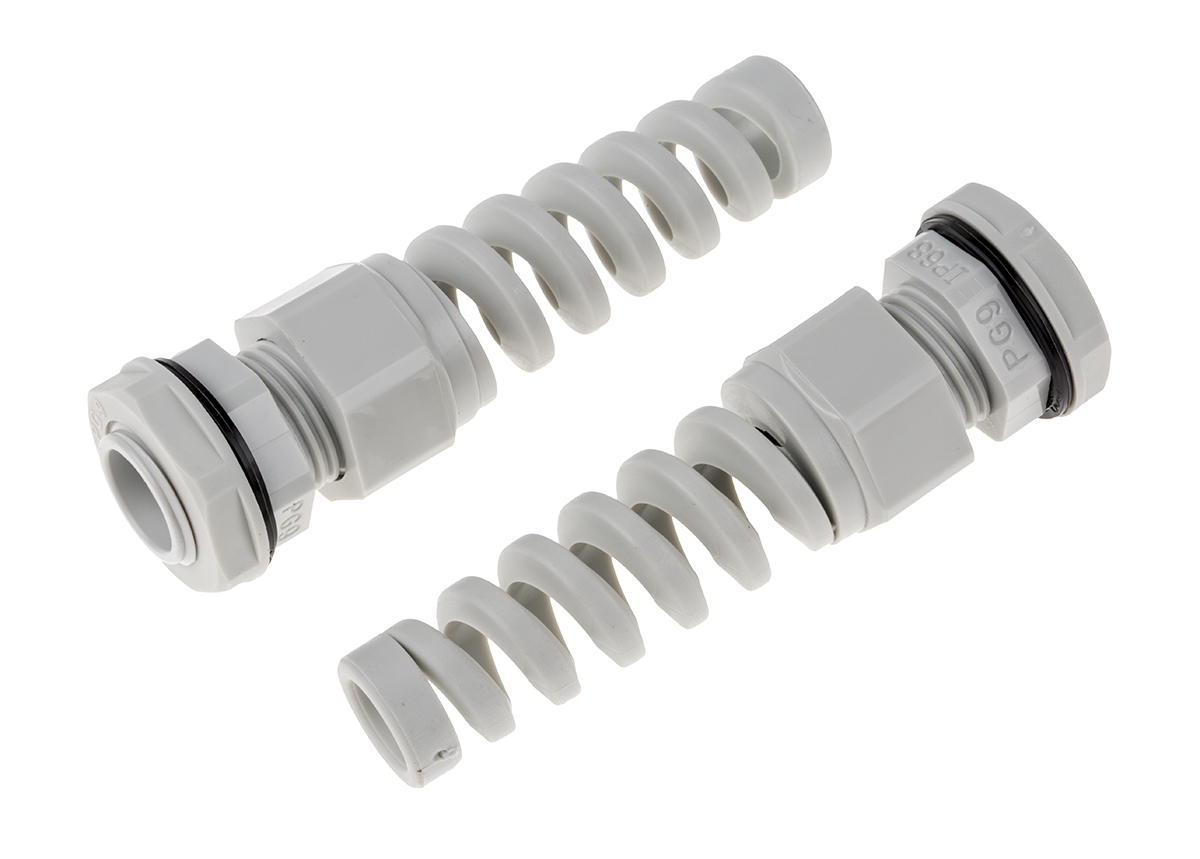 This is PG9 Grey Nylon IP68 Cable Gland With Locknut manufactured by RS Pro. The manufacturer part number is 822-9580. The product is made from highly stable and reliable nylon 66. It has a typical thread size of pg9.