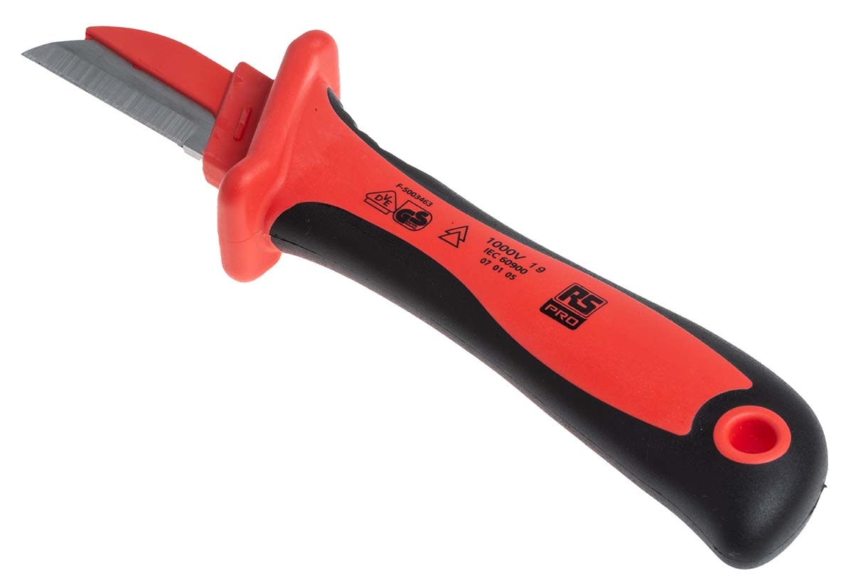 This is Ergonomic 220 mm Cable Knife manufactured by RS PRO. The manufacturer part number is 192-3674.
