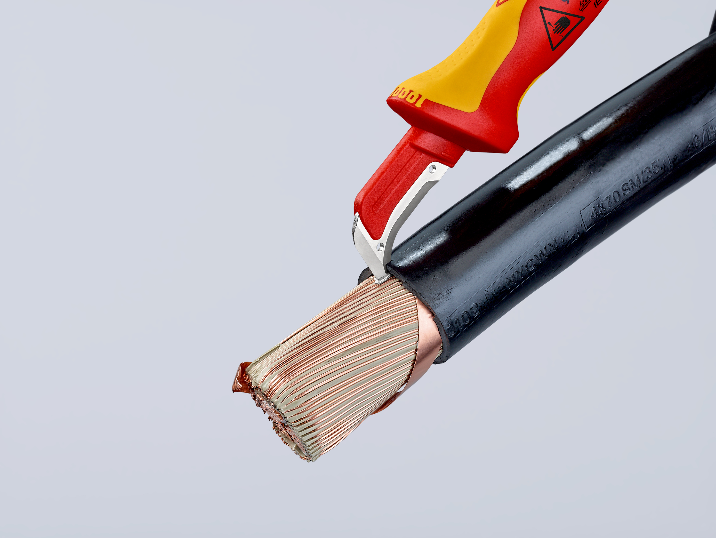 This is 180 mm VDE Cable Knife manufactured by Knipex. The manufacturer part number is 98 55.