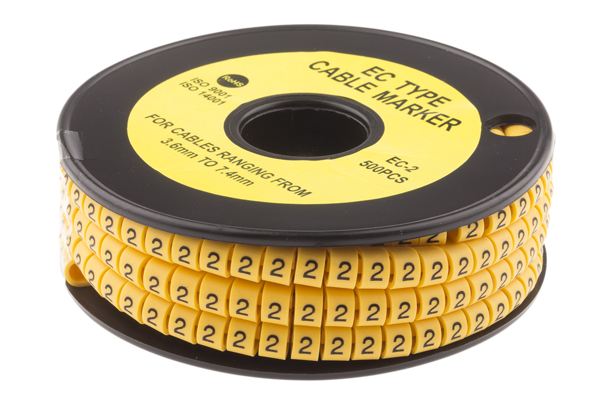This is Slide On Cable Marker 2 Black on Yellow 3.6 → 7.4mm Dia. Range 500 markers manufactured by RS Pro. The manufacturer part number is 812-0944. The product is made from highly stable and reliable pvc. Its accurate length is 5mm. It has a maximum operating temperature of +85°c. Legend Information: 2. Available in 500 quantity.