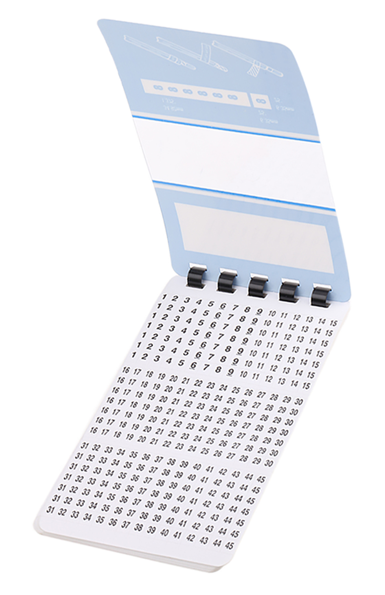 This is Self Adhesive Cable Marker Pre-printed 1 → 45 Black on White manufactured by RS Pro. The manufacturer part number is 812-1530. The product is made from highly stable and reliable vinyl coated cloth. Furthermore, the product is 5.6 mm wide. Its accurate length is 33mm. Legend Information: 1 → 45. Available in 10 quantity.