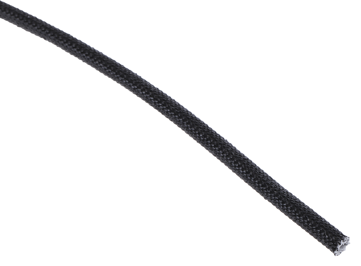 This is Not Expandable Braided Acrylic Fibreglass Black Cable Sleeve 2mm 5m manufactured by RS Pro. The manufacturer part number is 398-751. The product is made from highly stable and reliable acrylic fibreglass. It has 0.25mm thick wall. Whereas, the minimum operating temperature of the product is -25°c. It has a maximum operating temperature of +155°c.