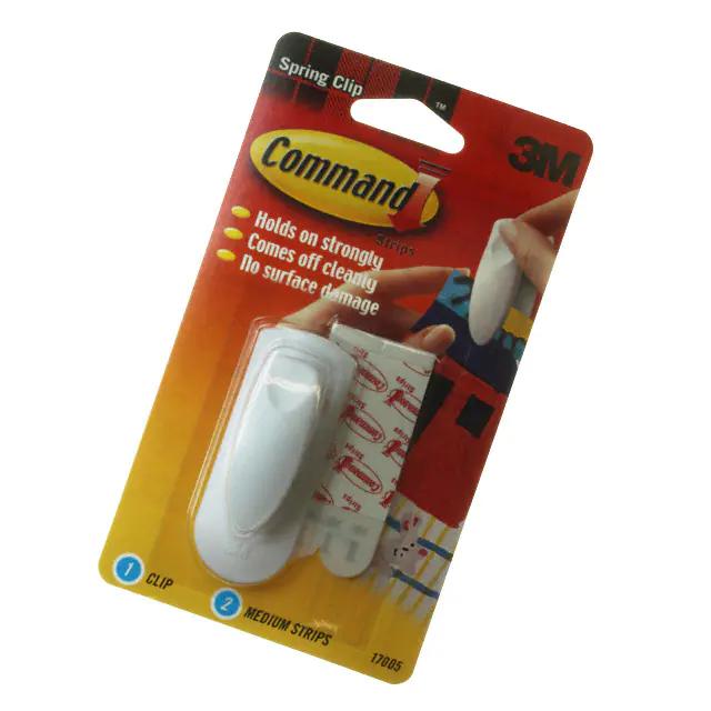 This is manufactured by 3M. The manufacturer part number is 17005. The product is a splendid rubber resin based adhesive. It is assigned with possible HTSUS value of 3926.90.9985. The product is rohs compliant. Furthermore, the product is 1.125" (28.58mm) wide. It comes in clip, spring configuration. The product is made from highly stable and reliable plastic. It is shipped in bulk. Its typical moisture sensitivity level is 1 (unlimited). Its accurate length is 3.000" (76.20mm). It has a long 7 weeks standard lead time. The product is available in adhesive configuration. It has a classic white colour. The product command™, is a highly preferred choice for users. In addition, the height is 0.750" (19.05mm). The product is designated with the ear99 code number