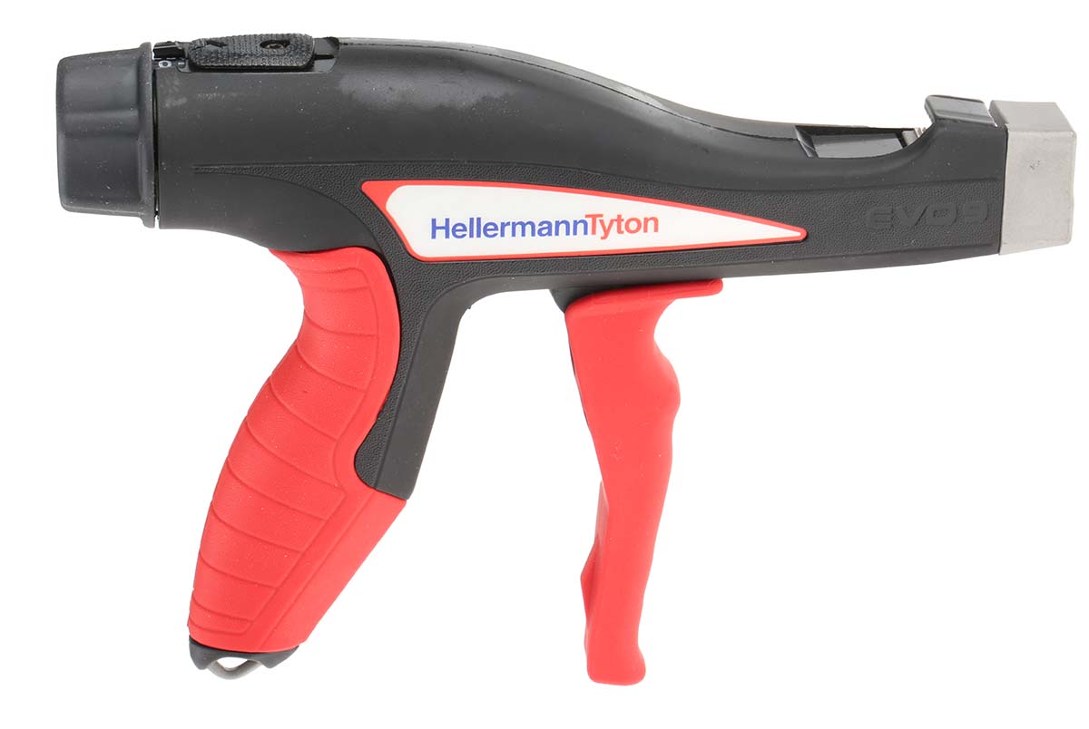 This is Cable Tie Gun 13mm Capacity manufactured by HellermannTyton. The manufacturer part number is 110-80002 EVO9-MET/PL-BK/RD. The product is made from highly stable and reliable plastic.