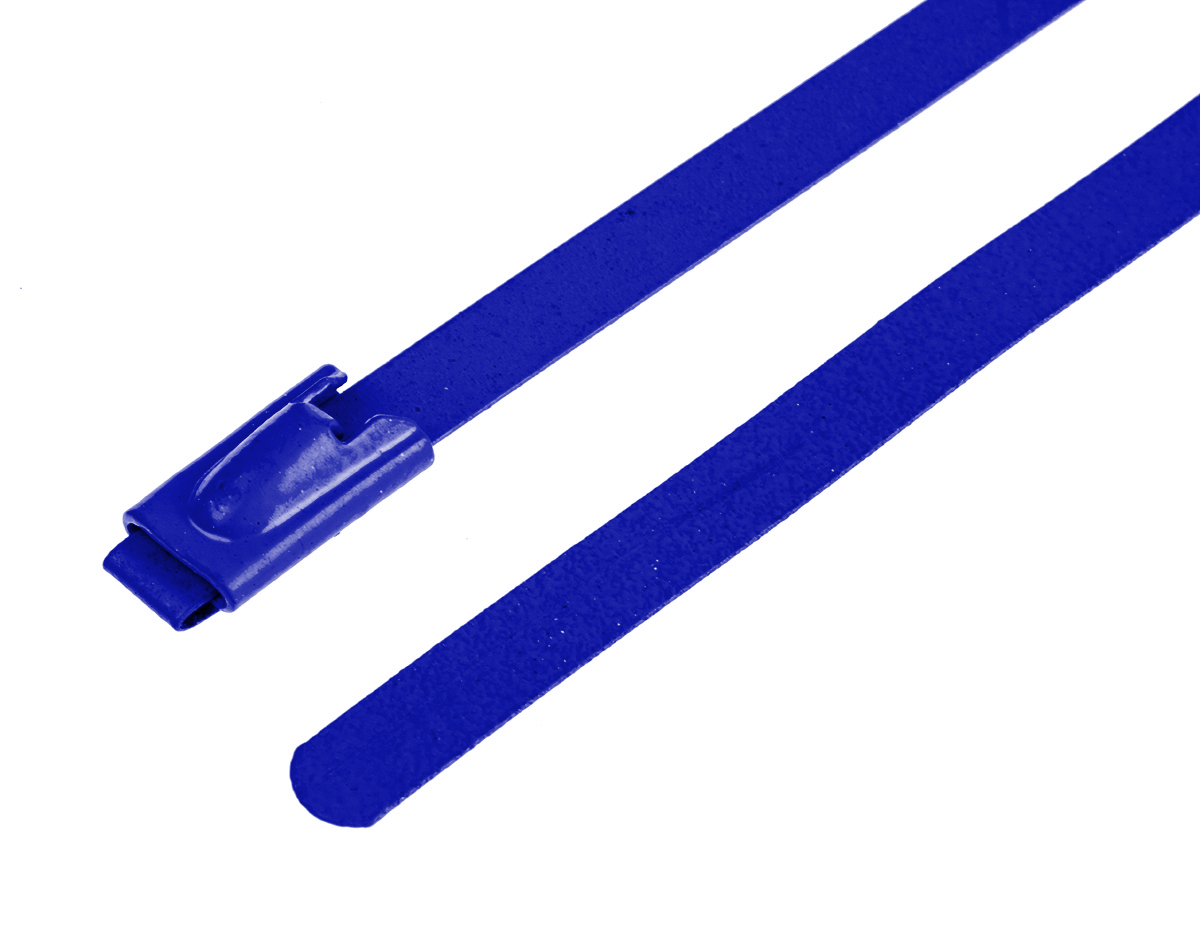 This is Blue Polyester Coated Stainless Steel Roller Ball Cable Tie 150mm x 4.6 mm manufactured by RS Pro. The manufacturer part number is 743-6298. It has a maximum operating temperature of +150°c. The product is made from highly stable and reliable polyester coated stainless steel. The product has an added tensile strength of 436.1n. Furthermore, the product is 4.6 mm wide. Its accurate length is 150mm. Whereas, the minimum operating temperature of the product is -80°c. It comes in roller ball configuration. Available in 100 quantity.